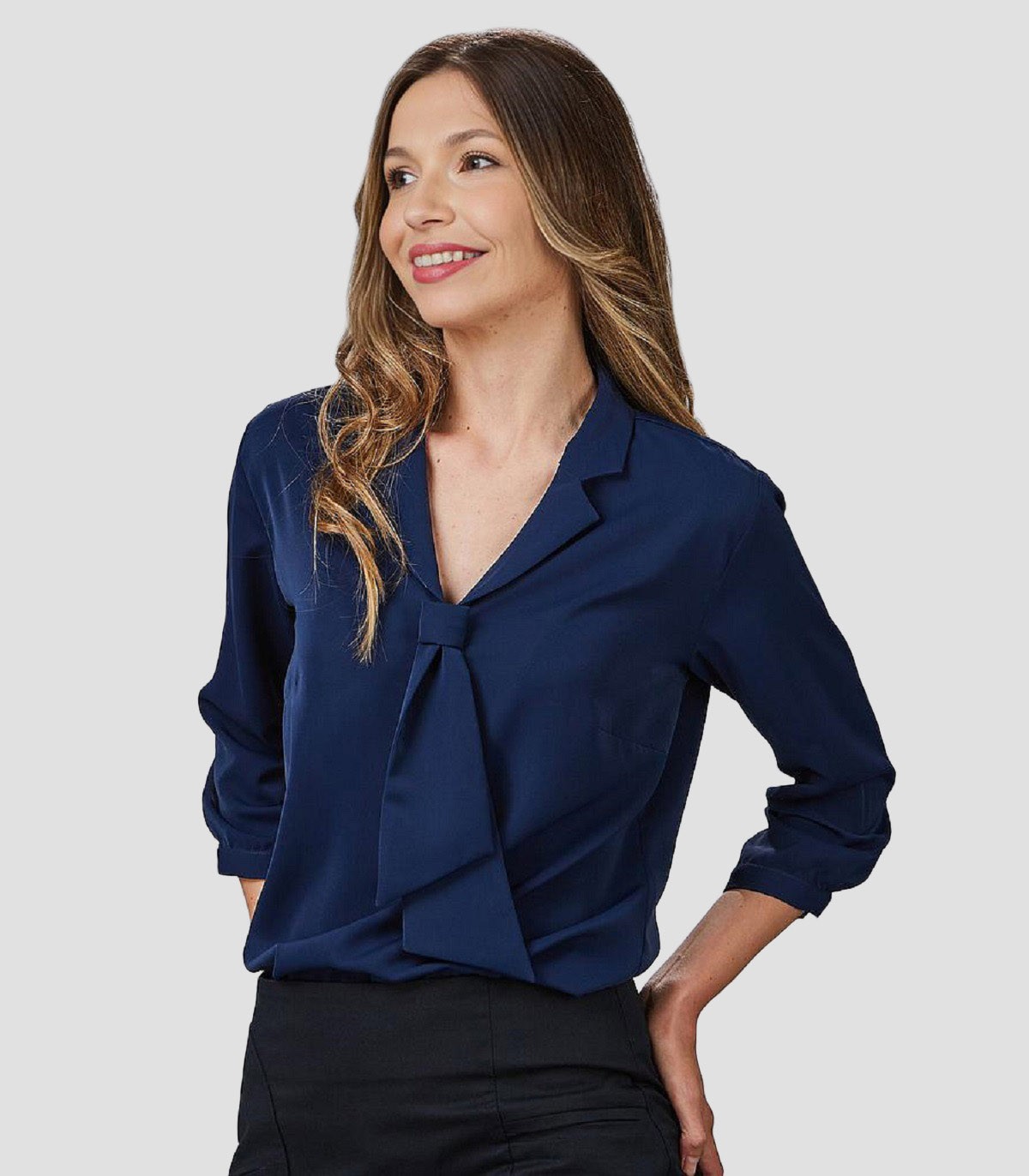 • Blusa con detalles sofisticados como el lazo en el cuello y un corte semi ajustado.