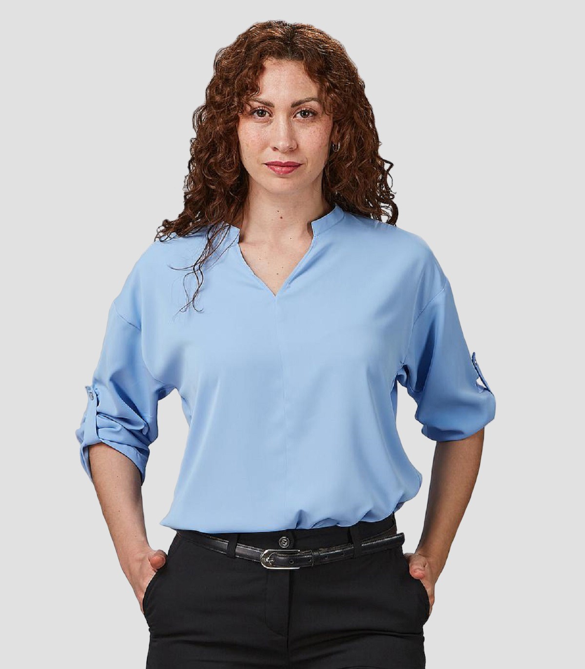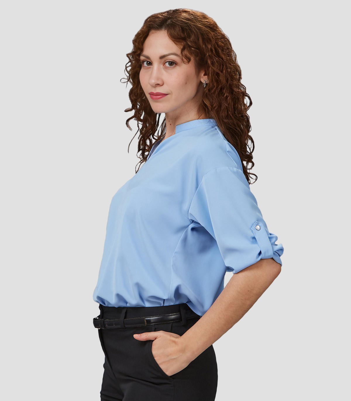 • La manga regulable con botón de presión permite adaptar la blusa a diferentes climas y ocasiones.