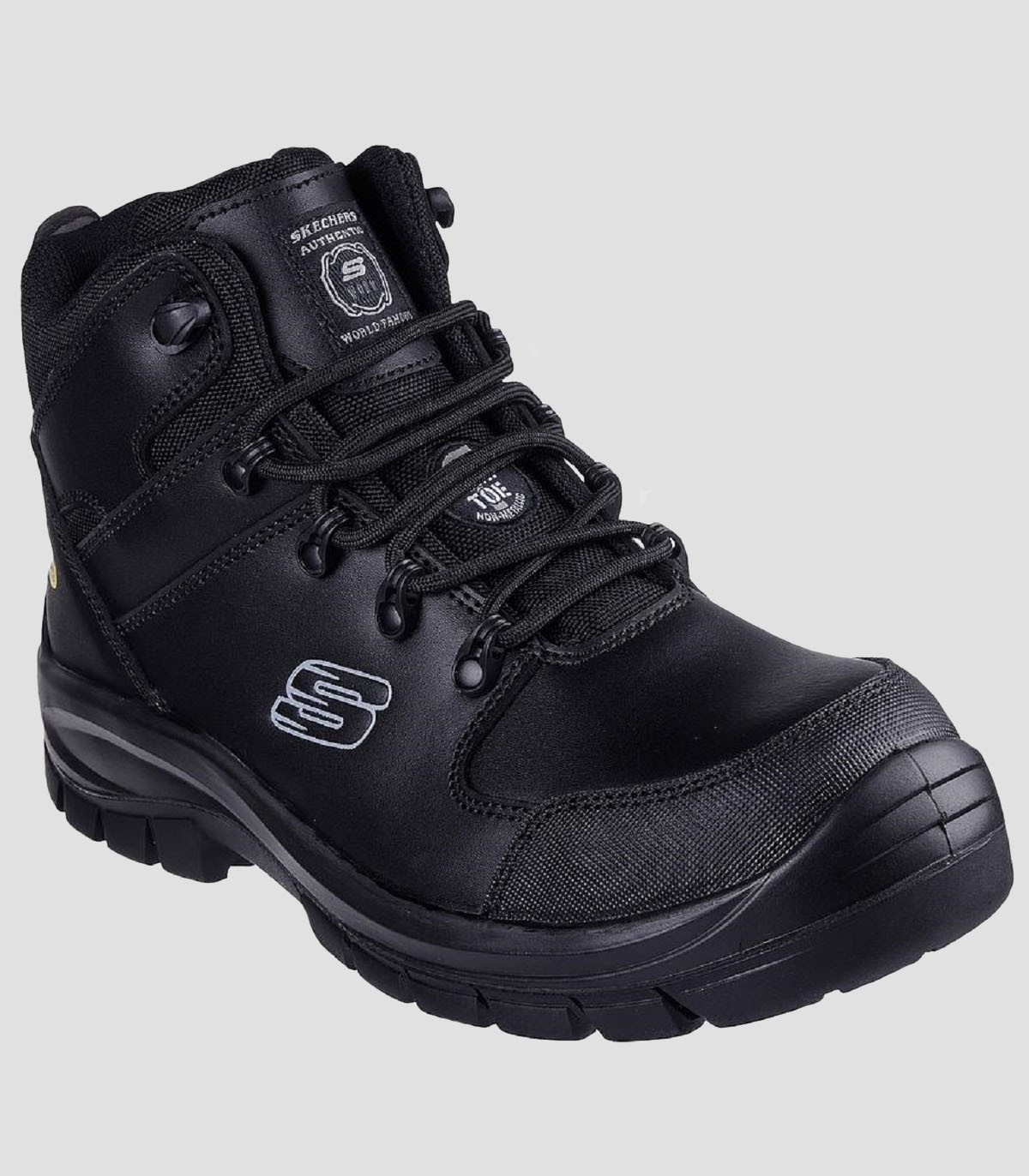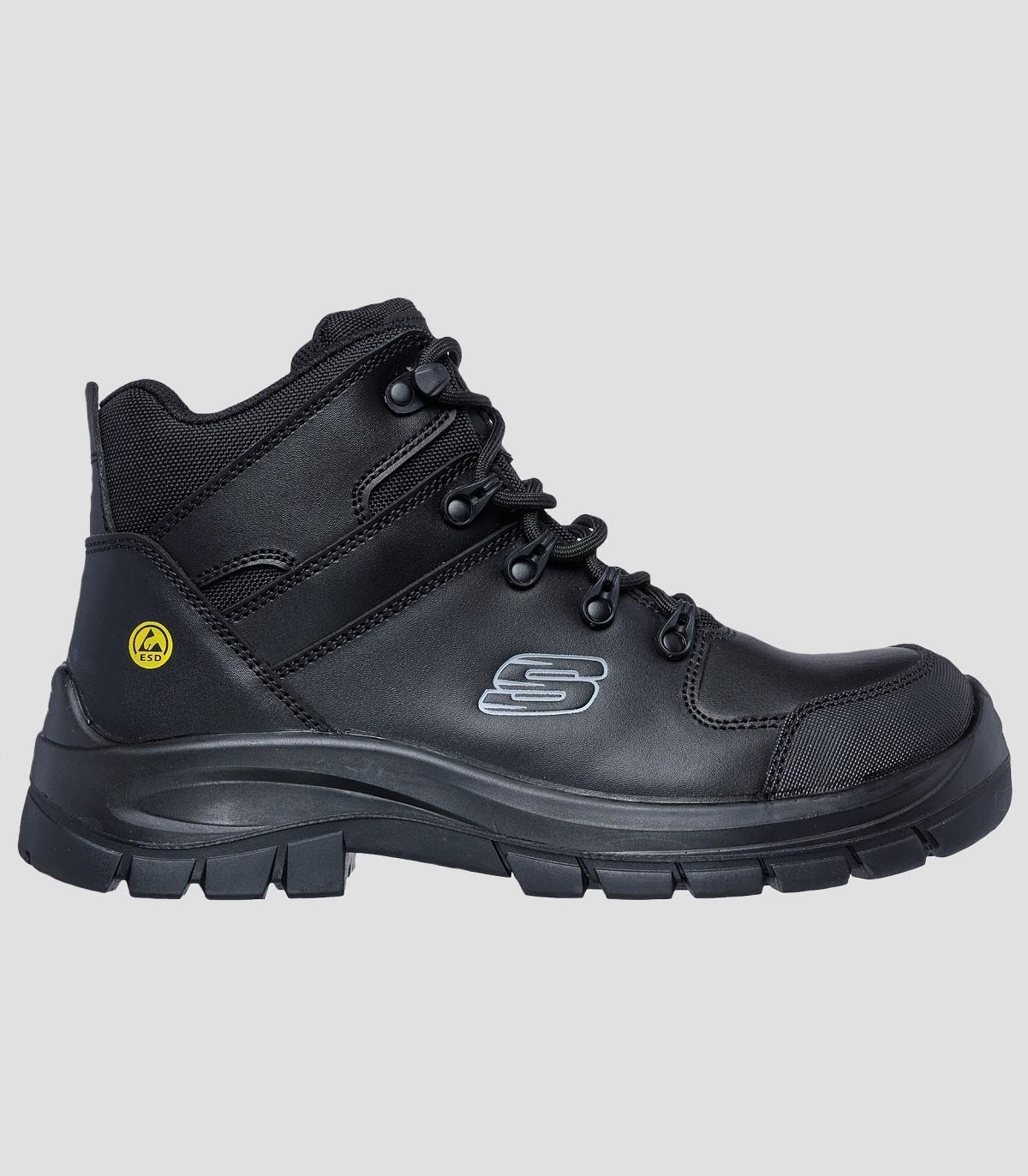 • Bota de trabajo de estilo montañero con cordones, parte superior de malla y piel, con plantilla con puntera de seguridad de composite.