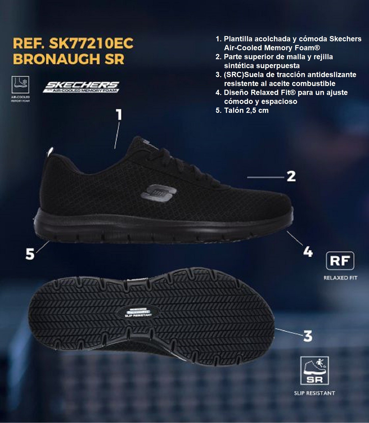 • Suela antideslizante nivel "SRC" testada en baldosa y acero.