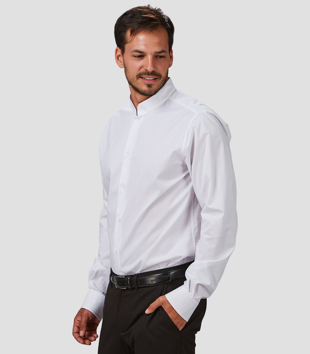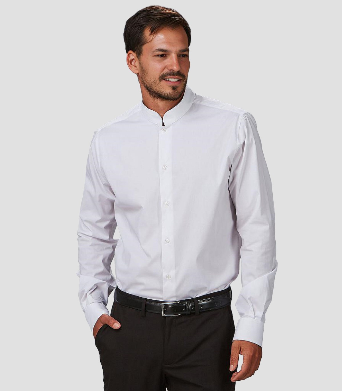 Camisa mujer cuello Mao Elastan Red Line Blanca