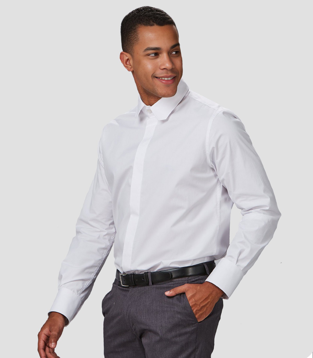 • Camisa Slim Fit en manga larga y puño abotonado.