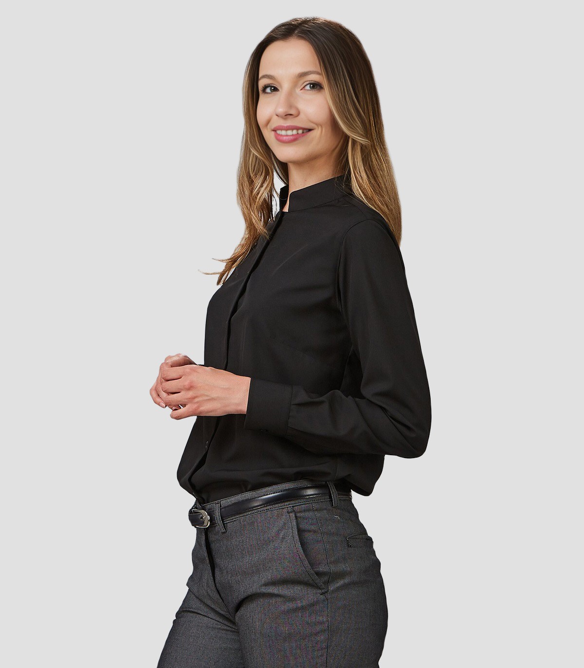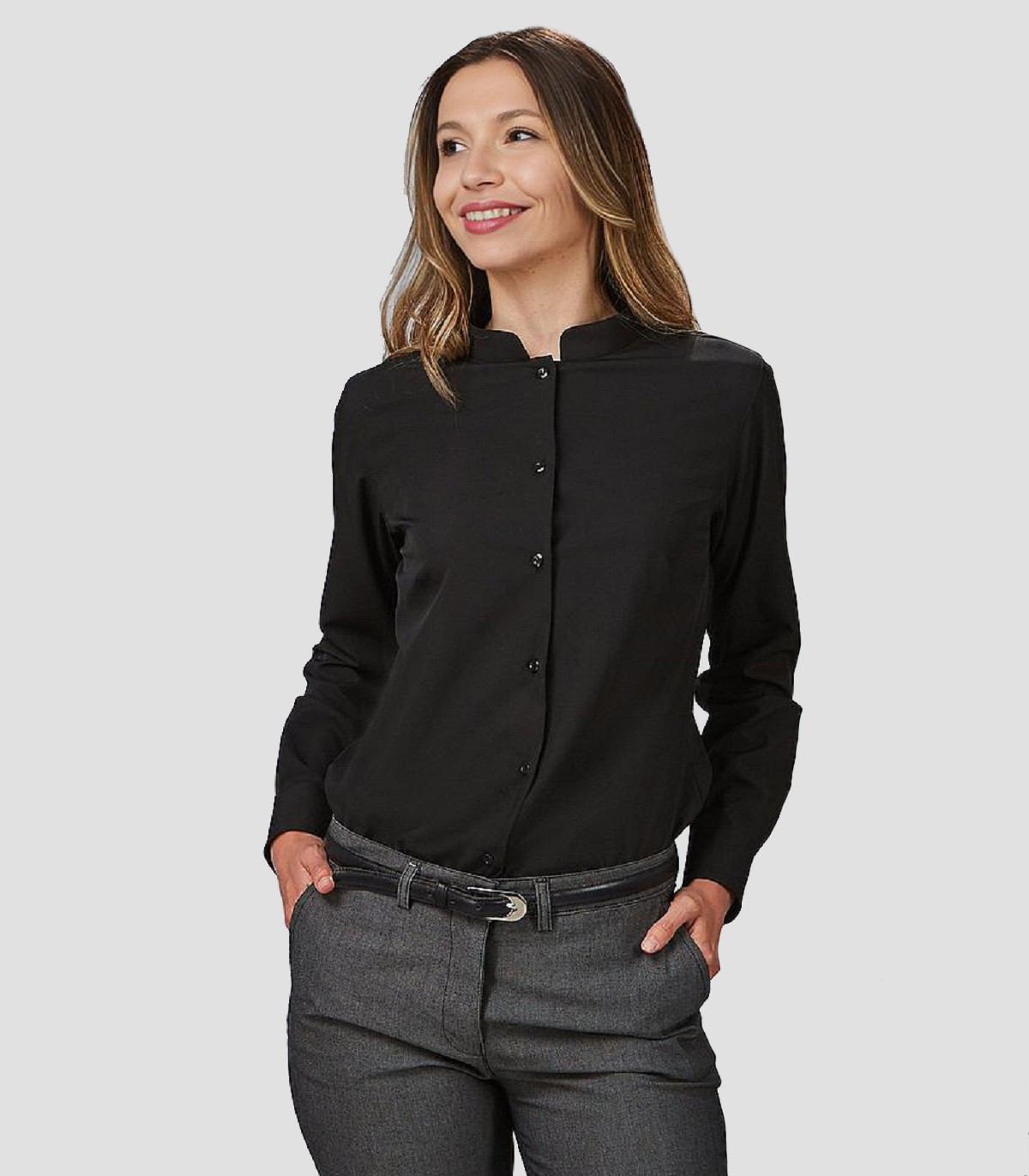 • Camisa semi ajustada, con cuello mao.