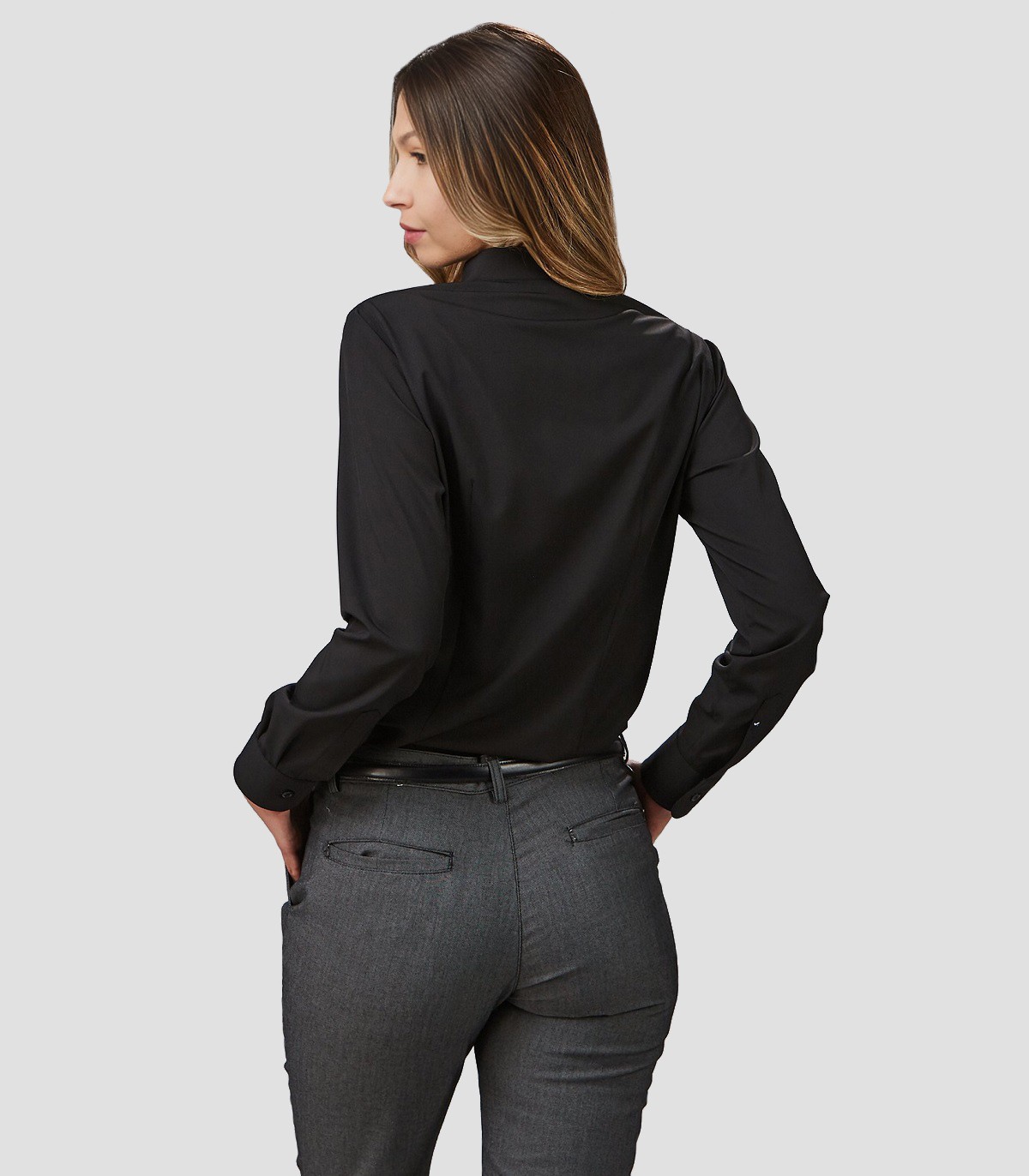 • Manga larga con puño abotonado.