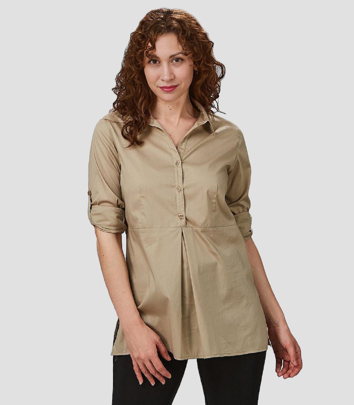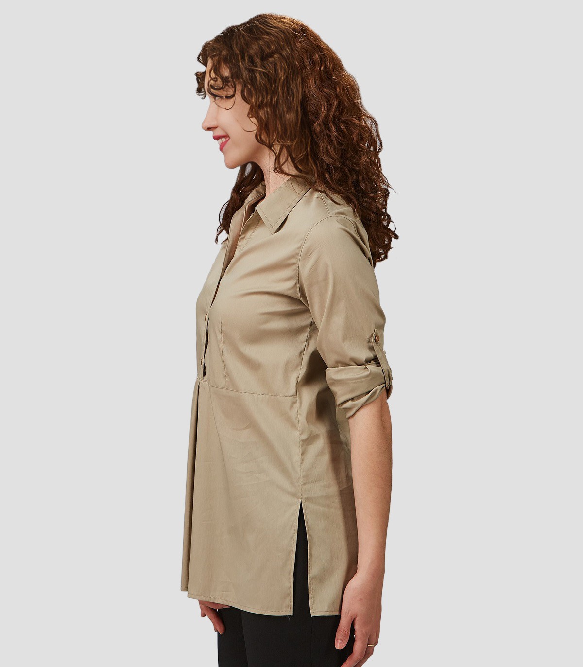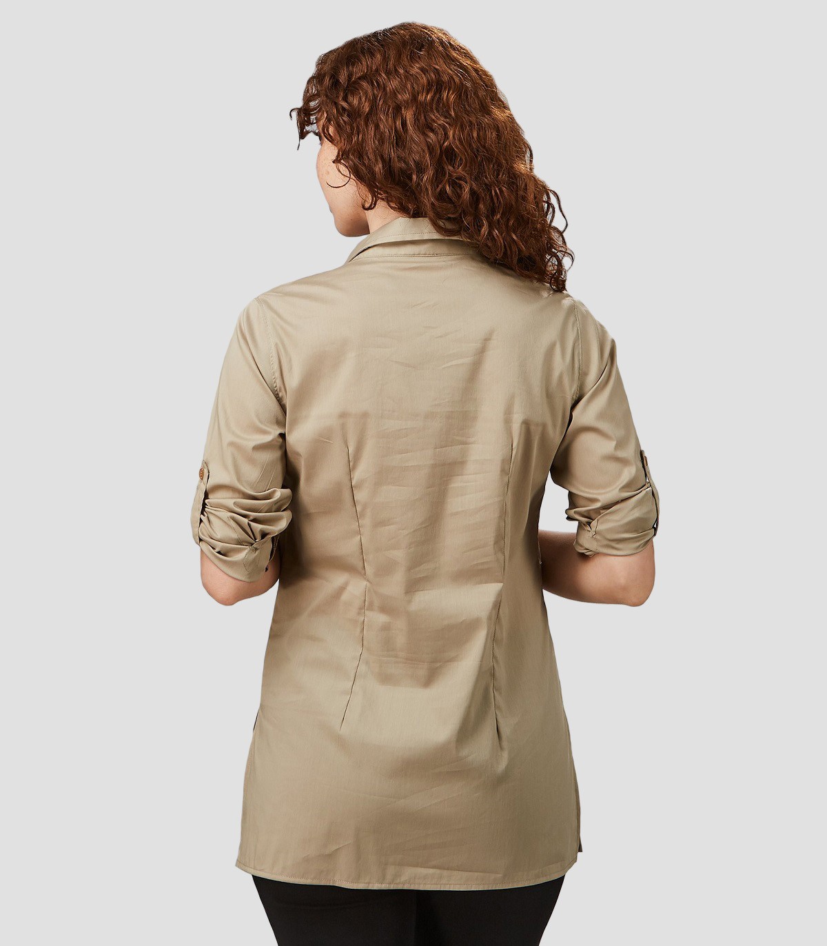 • Camisa semi ajustada, con cuello camisero abierto.