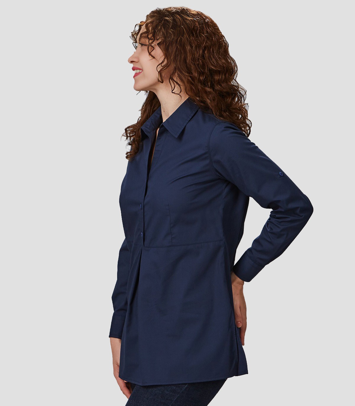 • Camisa semi ajustada, con cuello camisero abierto.