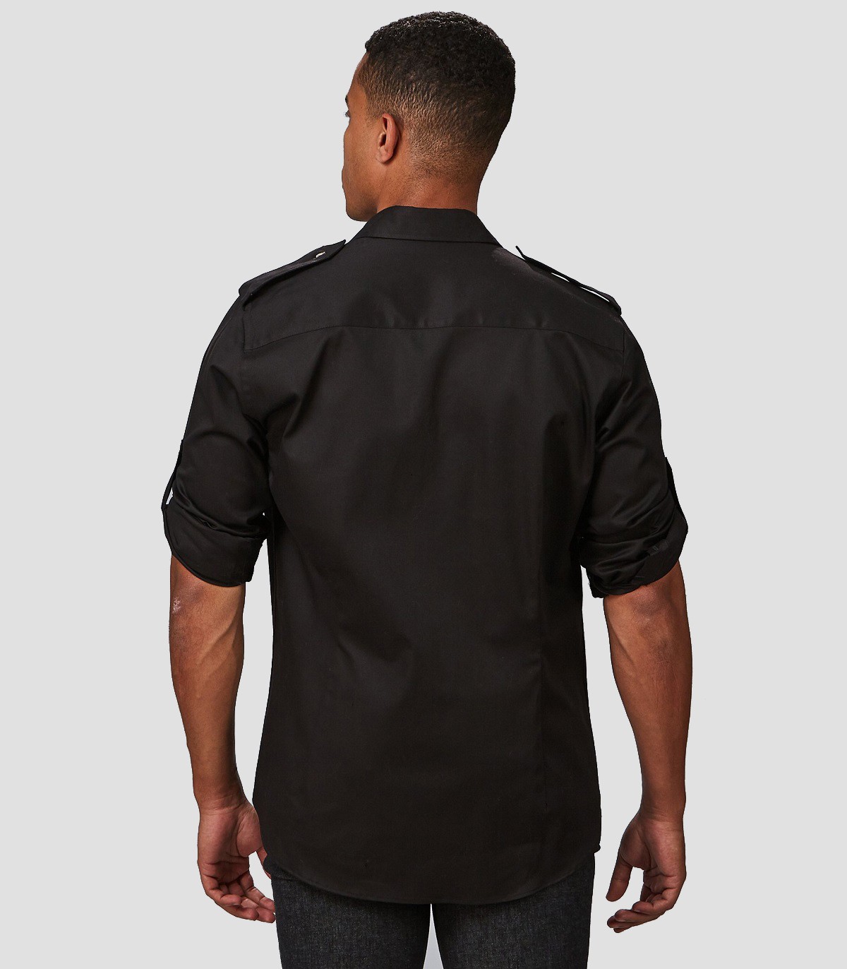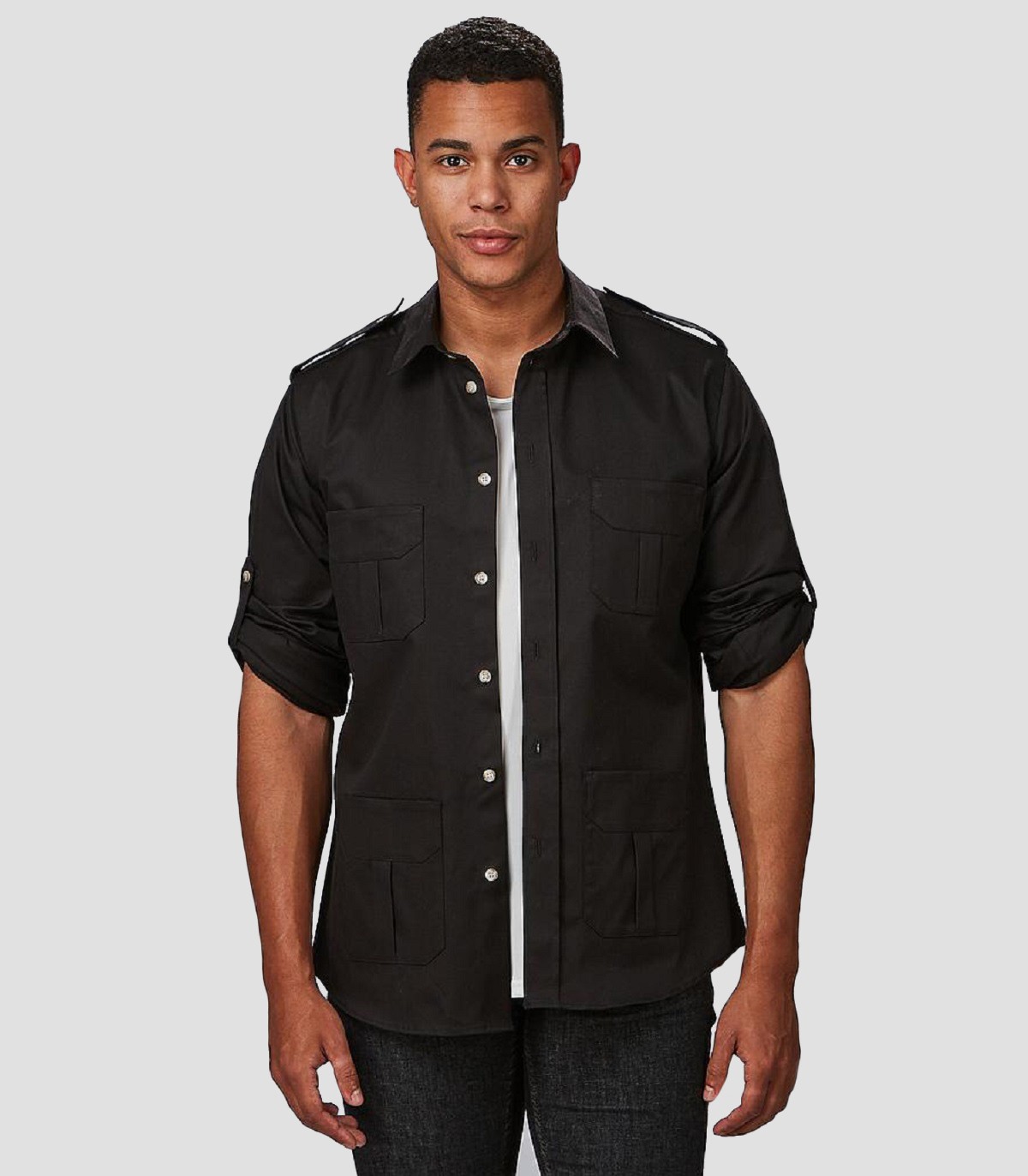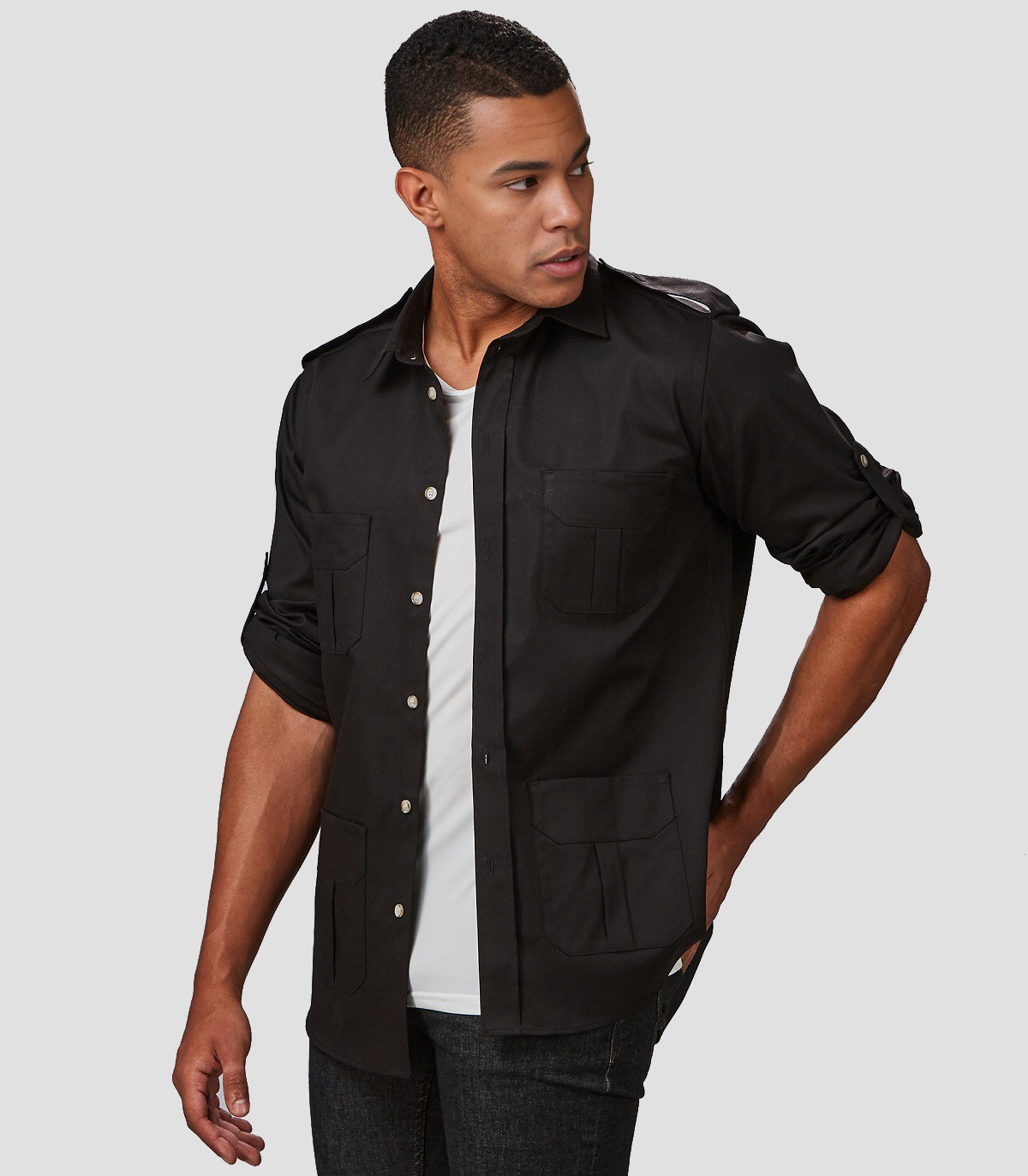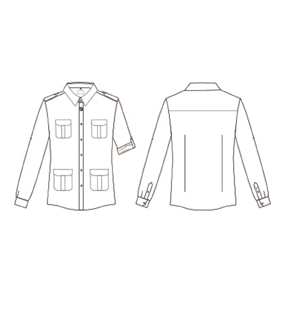 • Camisa con cuello camisero, mangas regulables y cuatro bolsillos en el delantero.