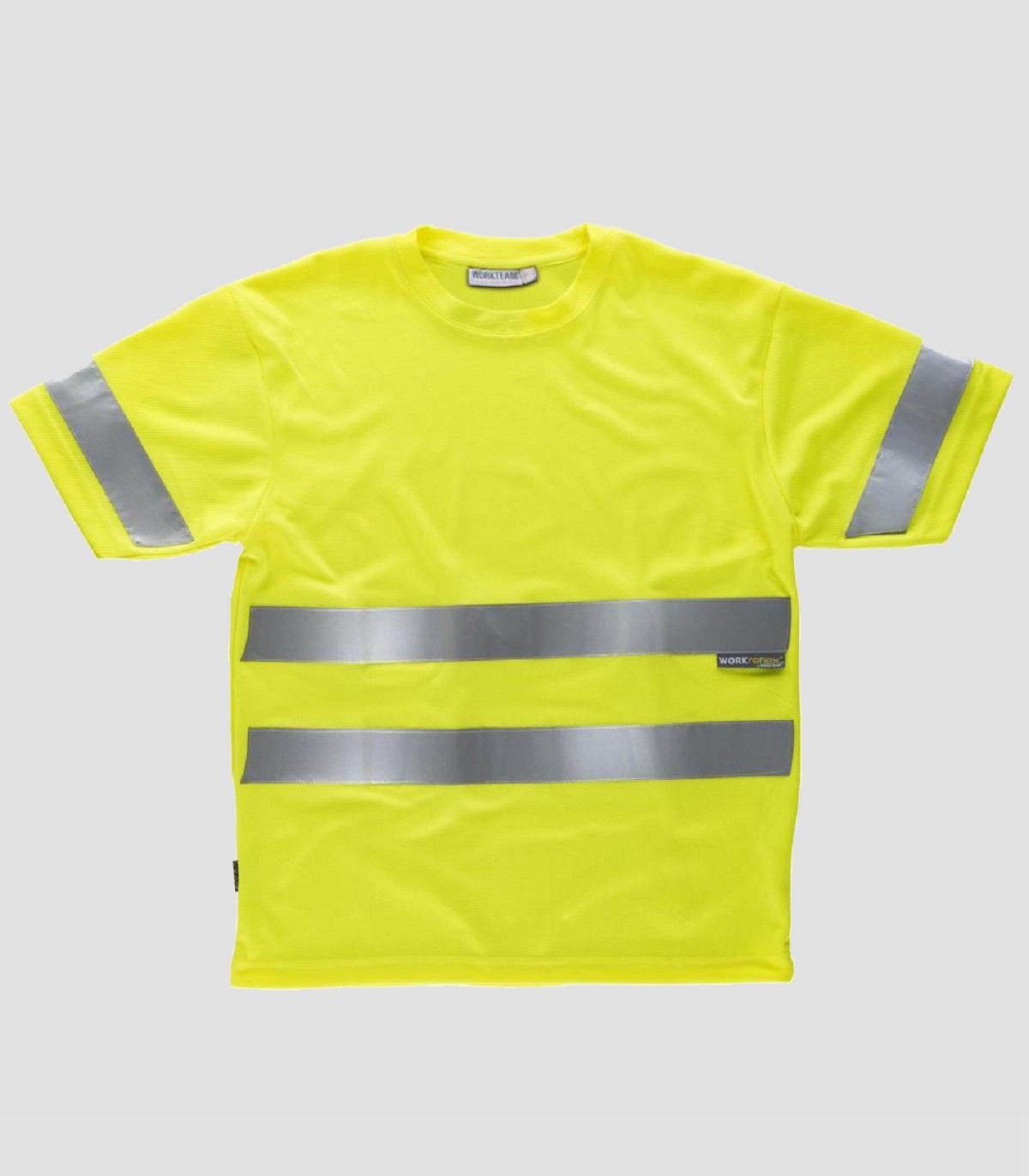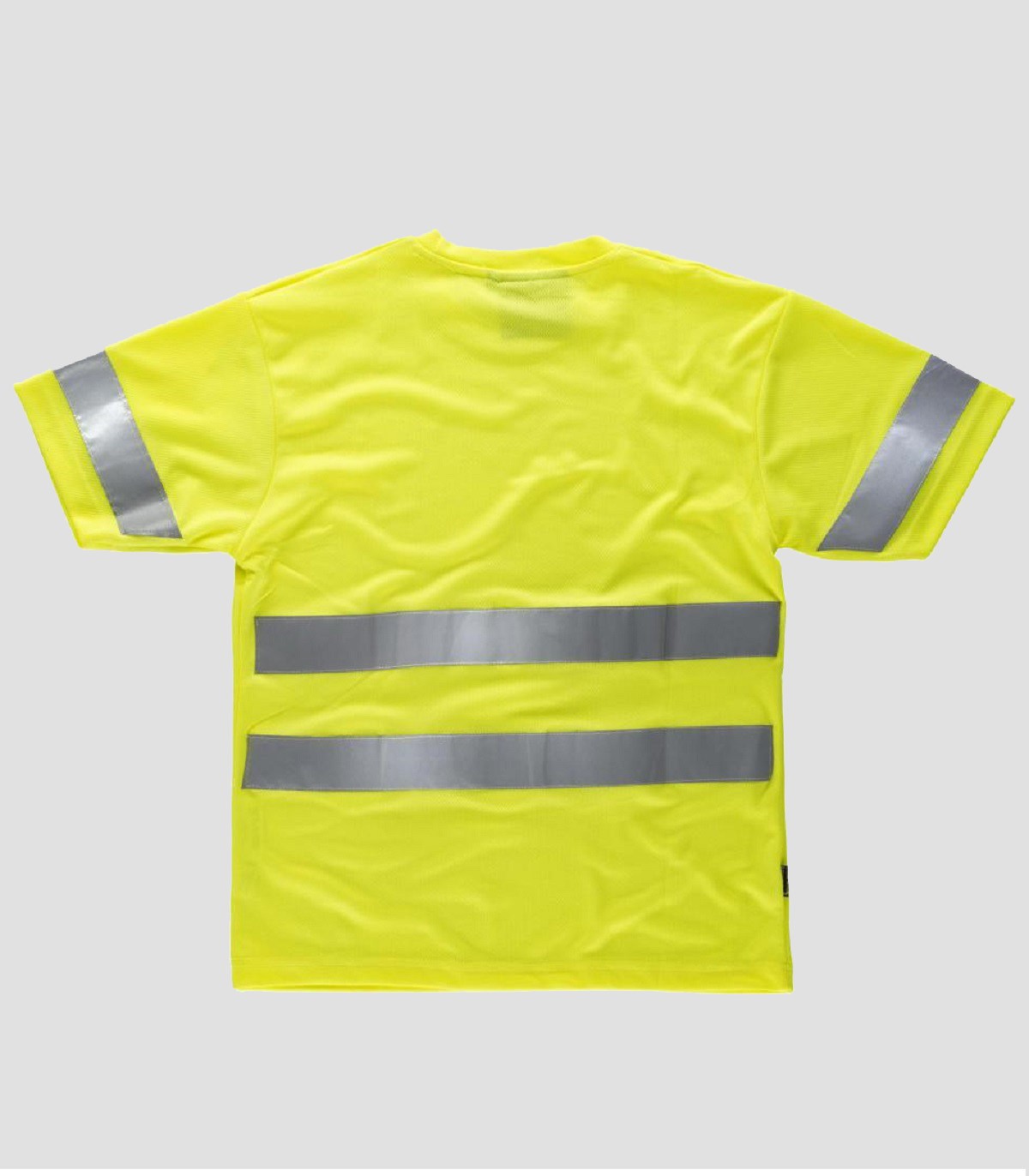 • Camiseta de manga corta de alta visibilidad en poliéster ojo de perdiz con cintas reflectantes.