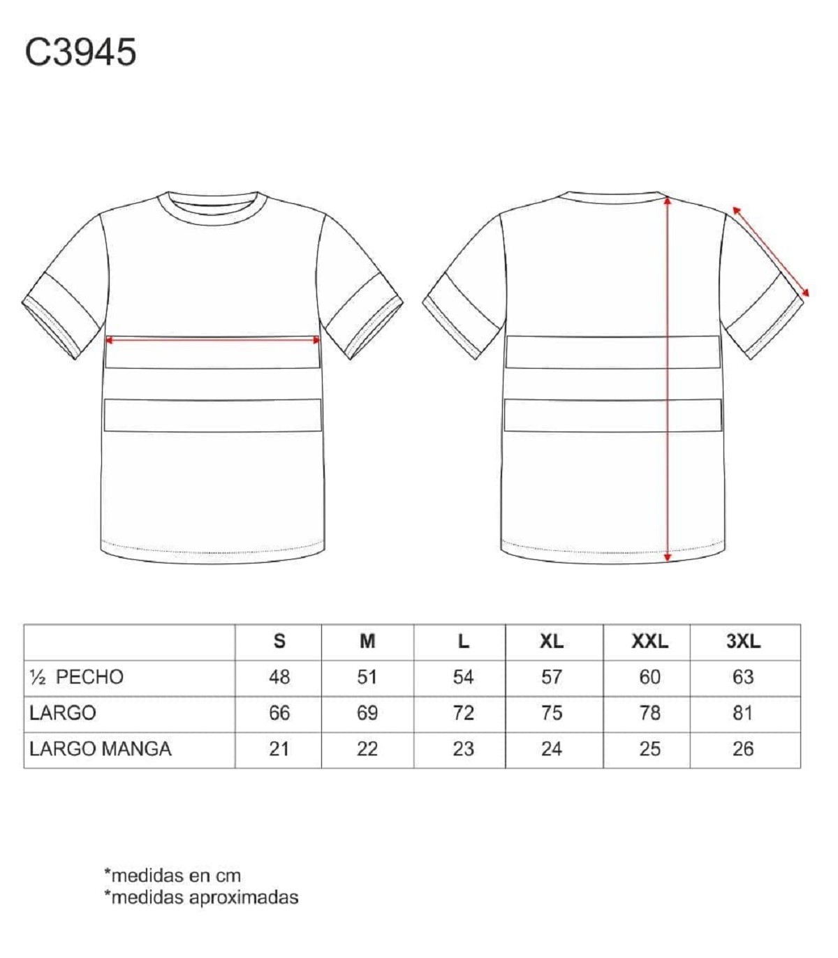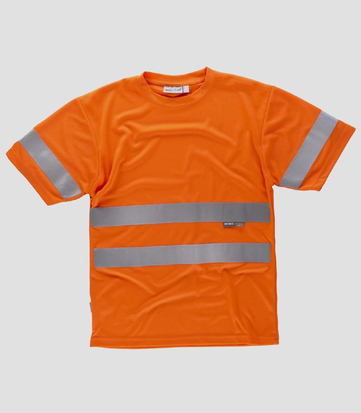 • Camiseta de manga corta de alta visibilidad en poliéster ojo de perdiz con cintas reflectantes.