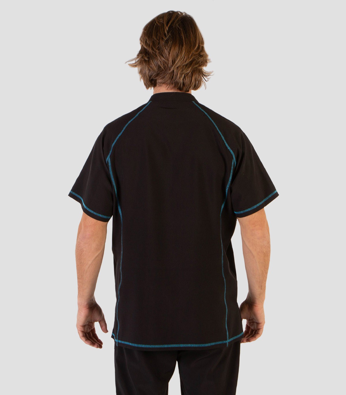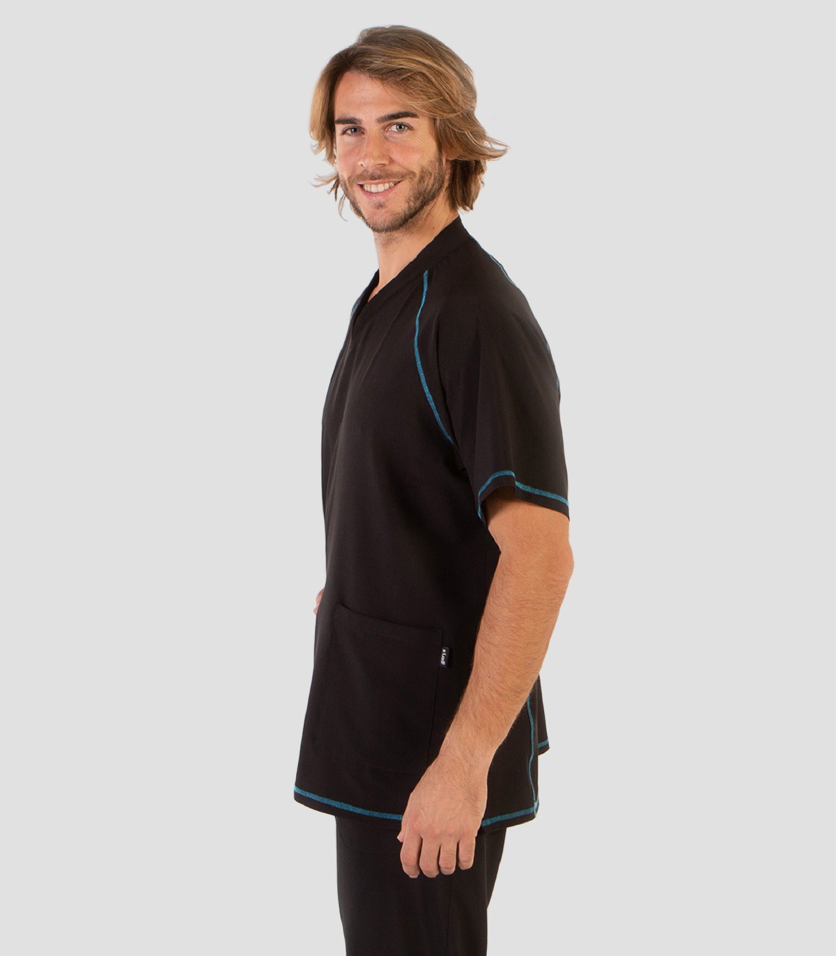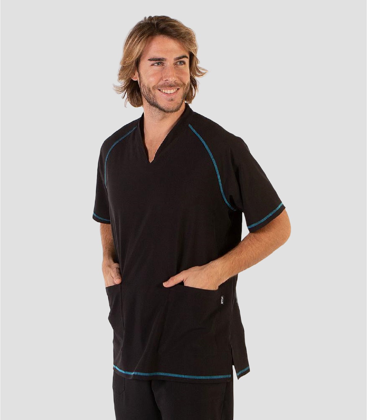 Pijama sanitario de cuello pico con dos bolsillos de parche delantero.