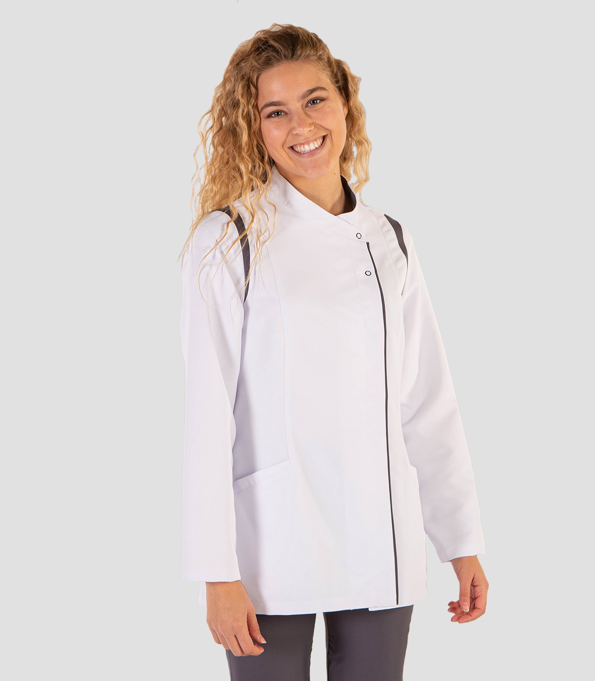 • Casaca sanitaria mujer con detalles tejido Aerosilver (tejido que respira).