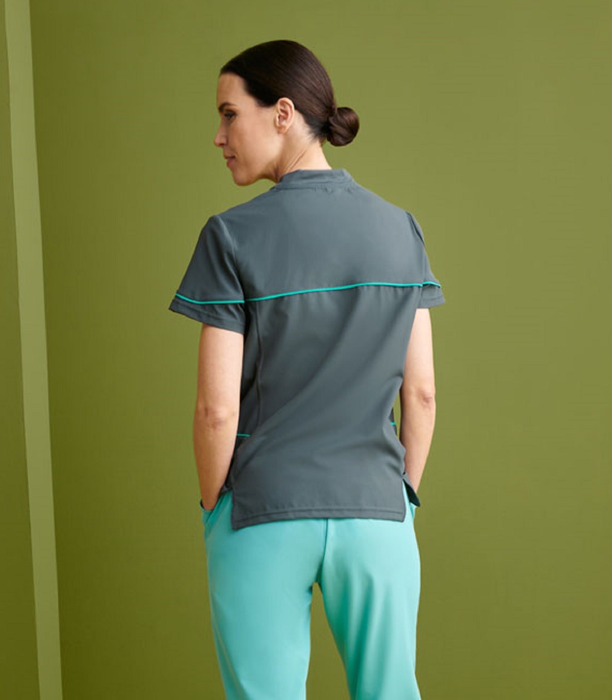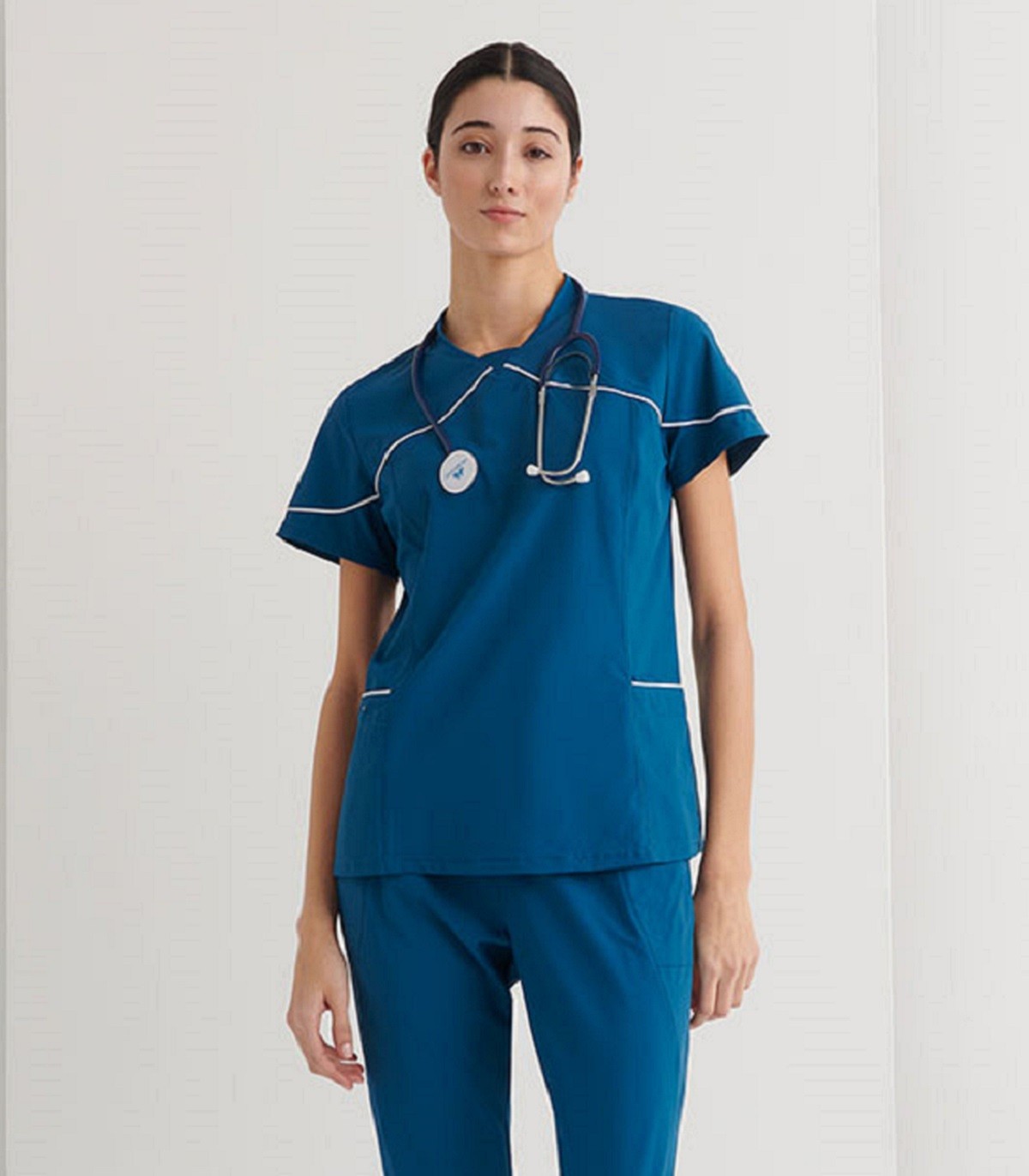• Casaca sanitaria slim fit, corte estrecho que realza la silueta.