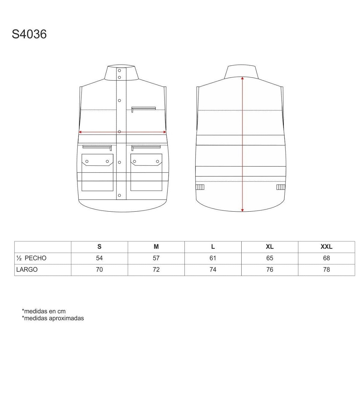 • Un bolsillo de pecho y dos laterales interiores con cierre de cremallera. Dos bolsillos con fuelle y cartera de corchetes en los costados. Un bolsillo de pecho de plastón con cierre de velcro en el interior.