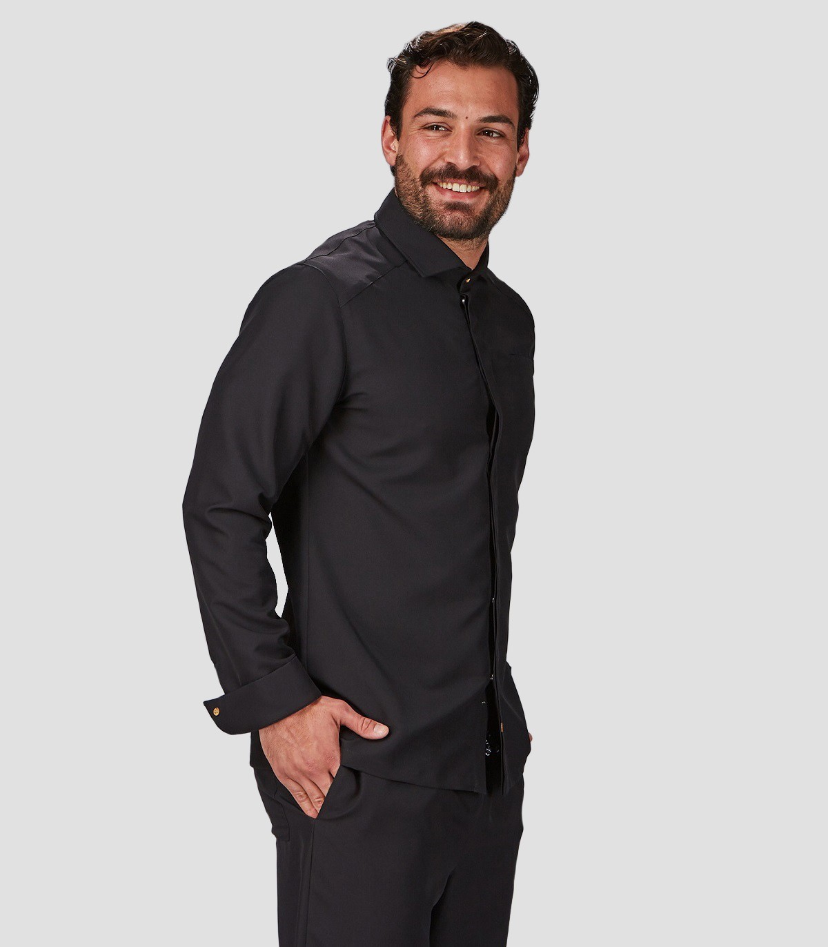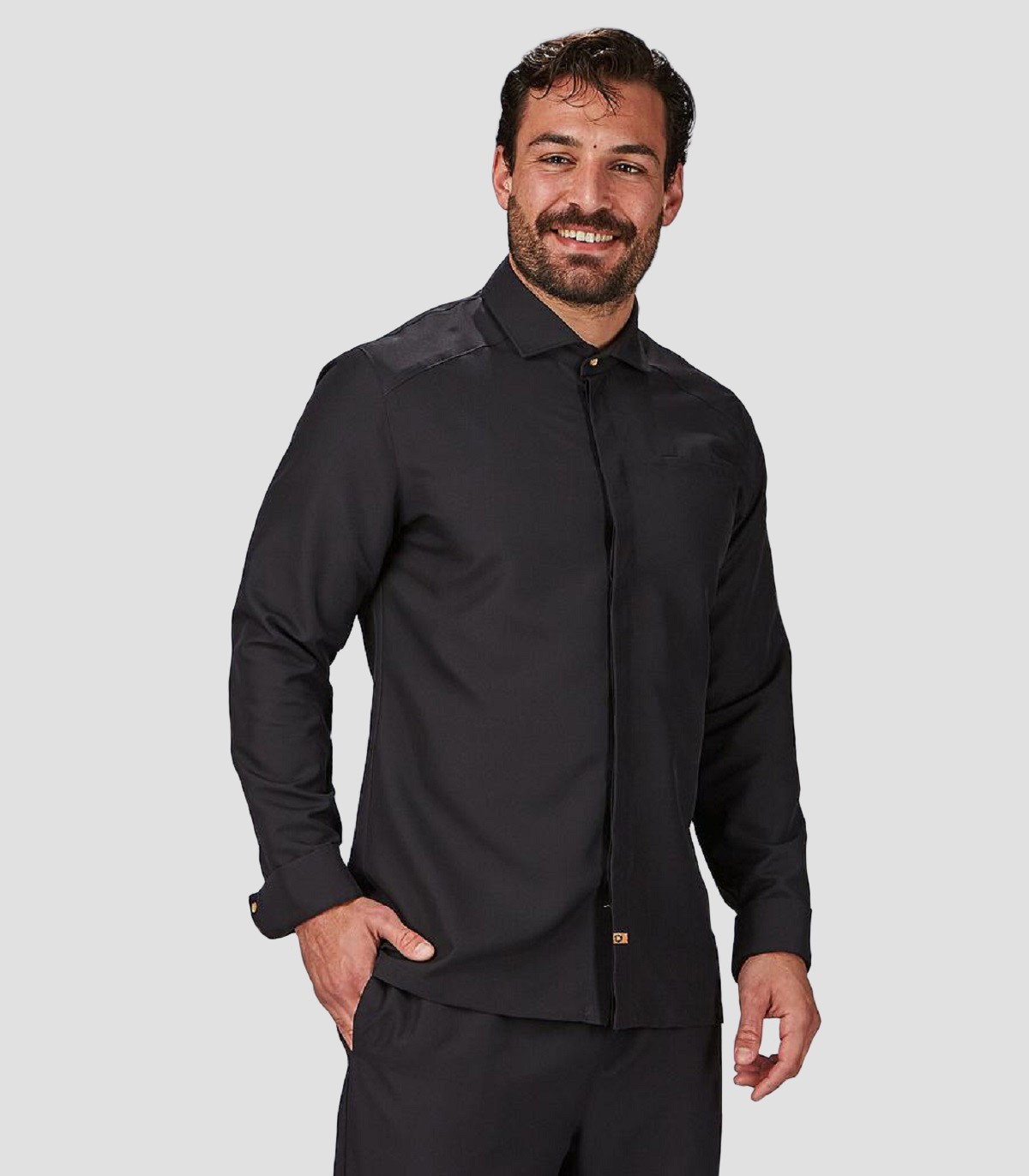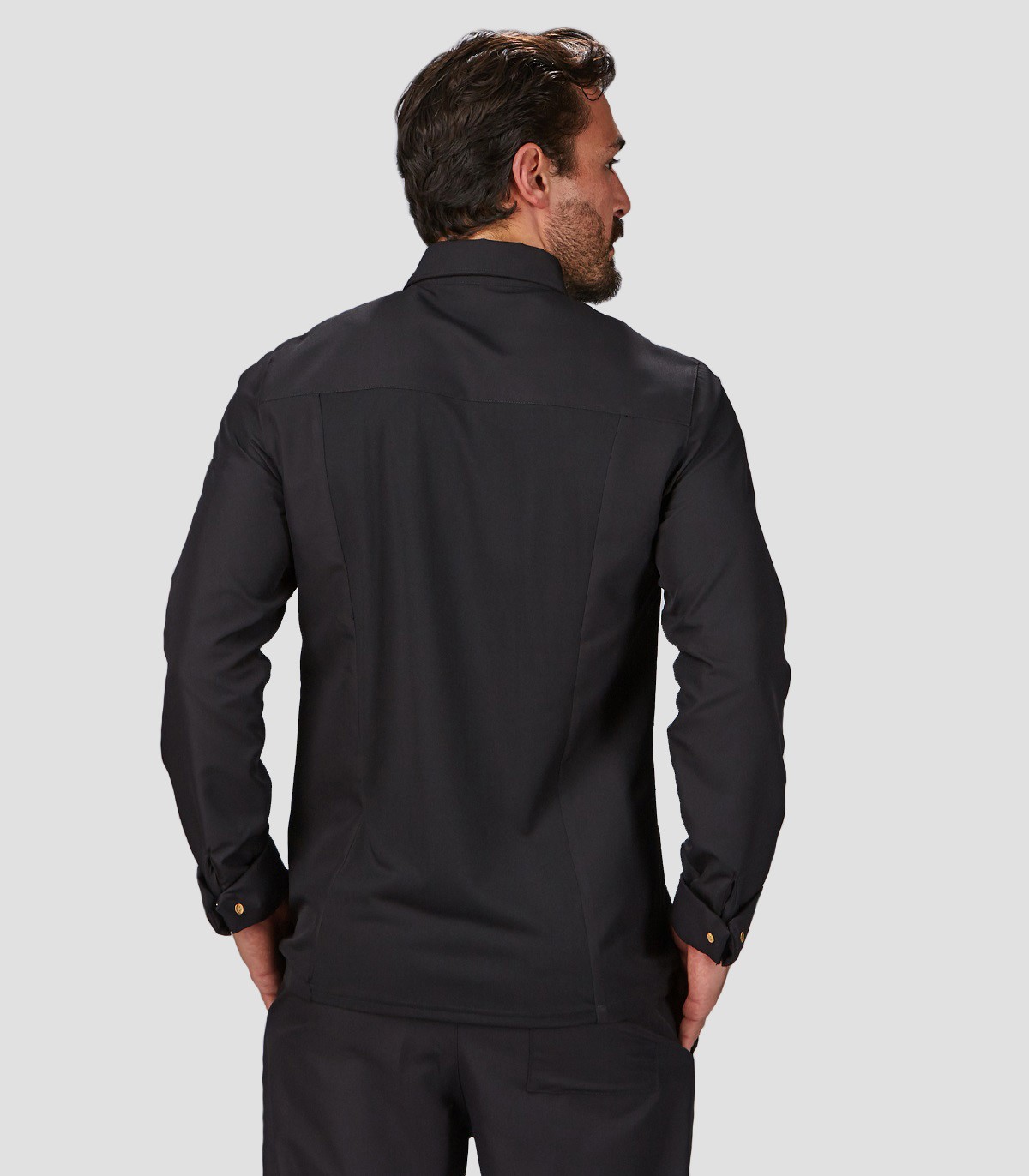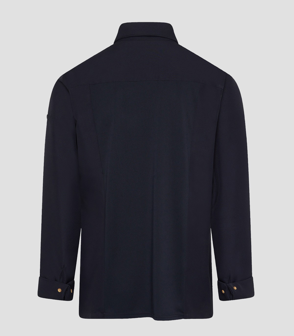 • Chaqueta de cocina con cuello italiano diseñada para profesionales que buscan una imagen impecable sin renunciar a la comodidad.