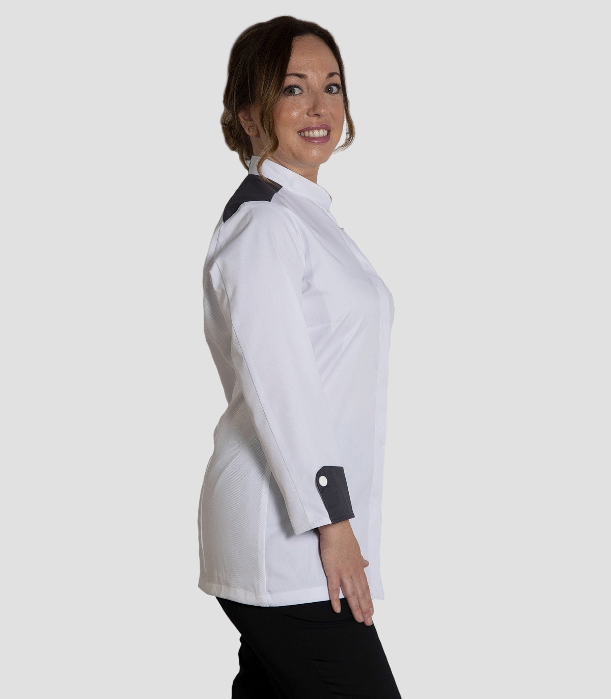 • Chaqueta de cocinera Gastrochef con cuello mao.