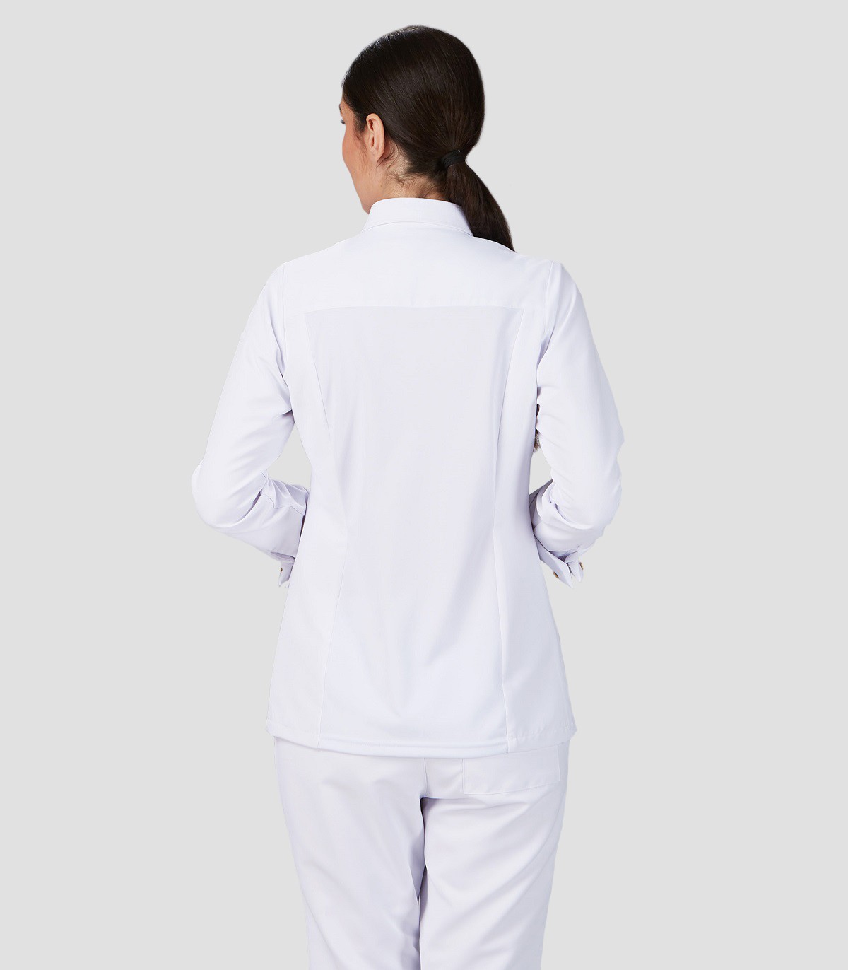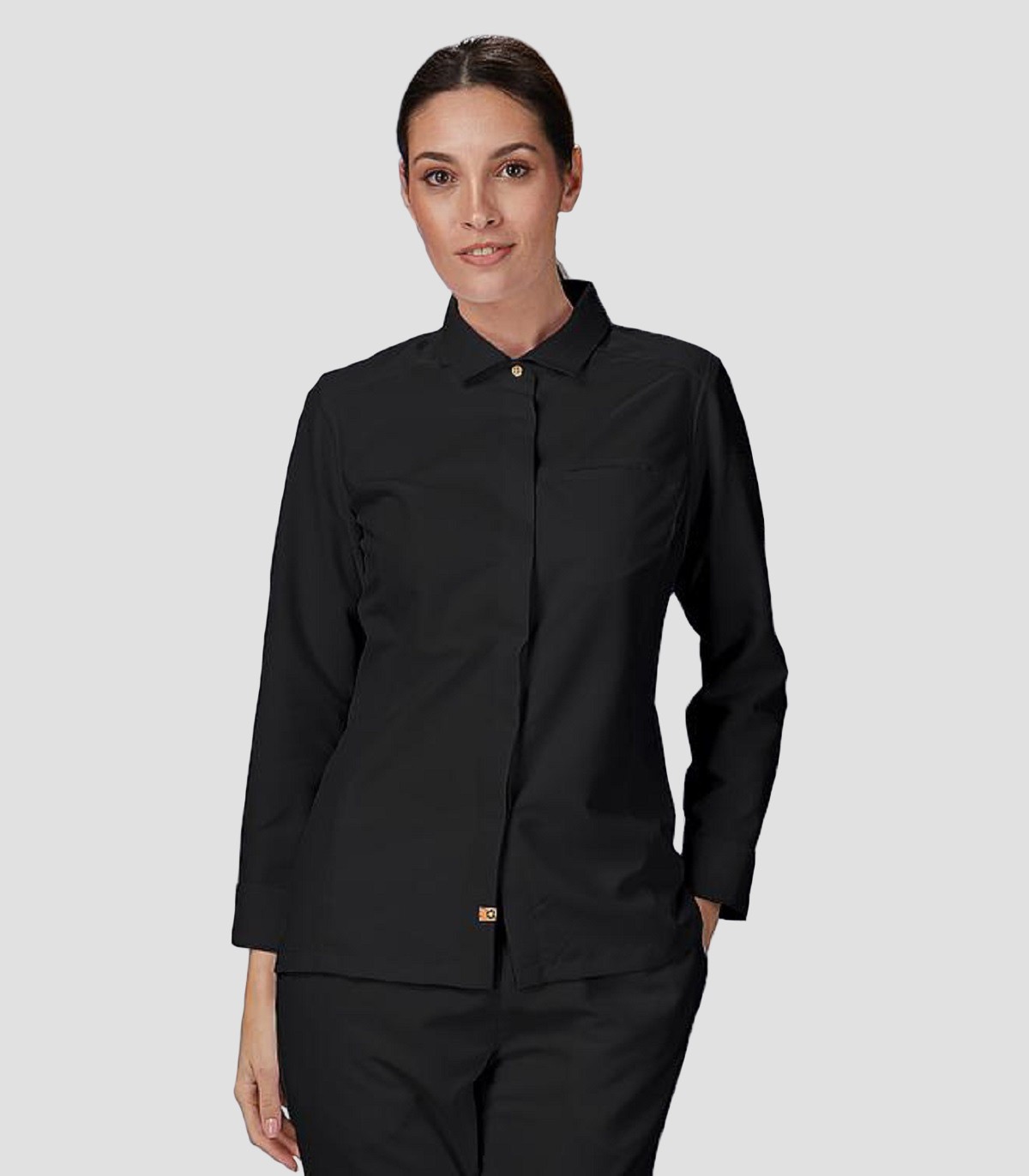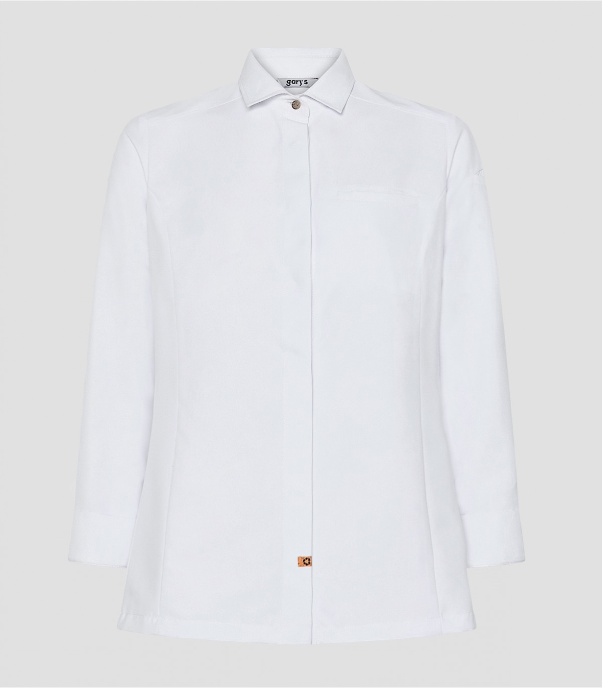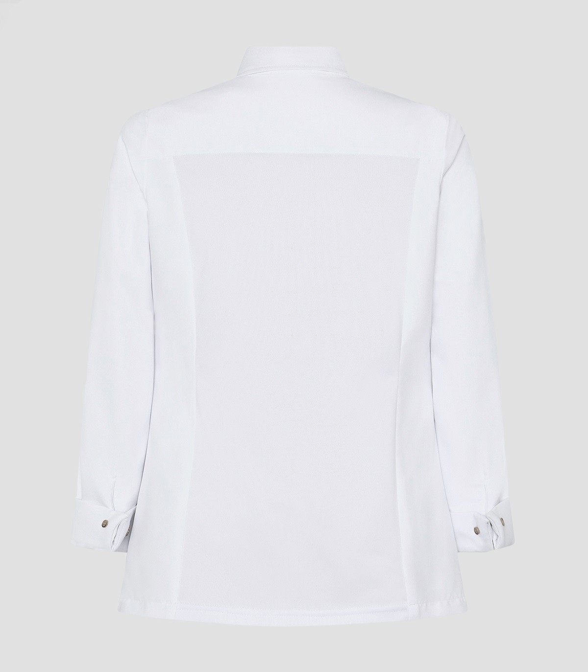 • Chaqueta de cocina con cuello italiano diseñada para profesionales que buscan una imagen impecable sin renunciar a la comodidad.