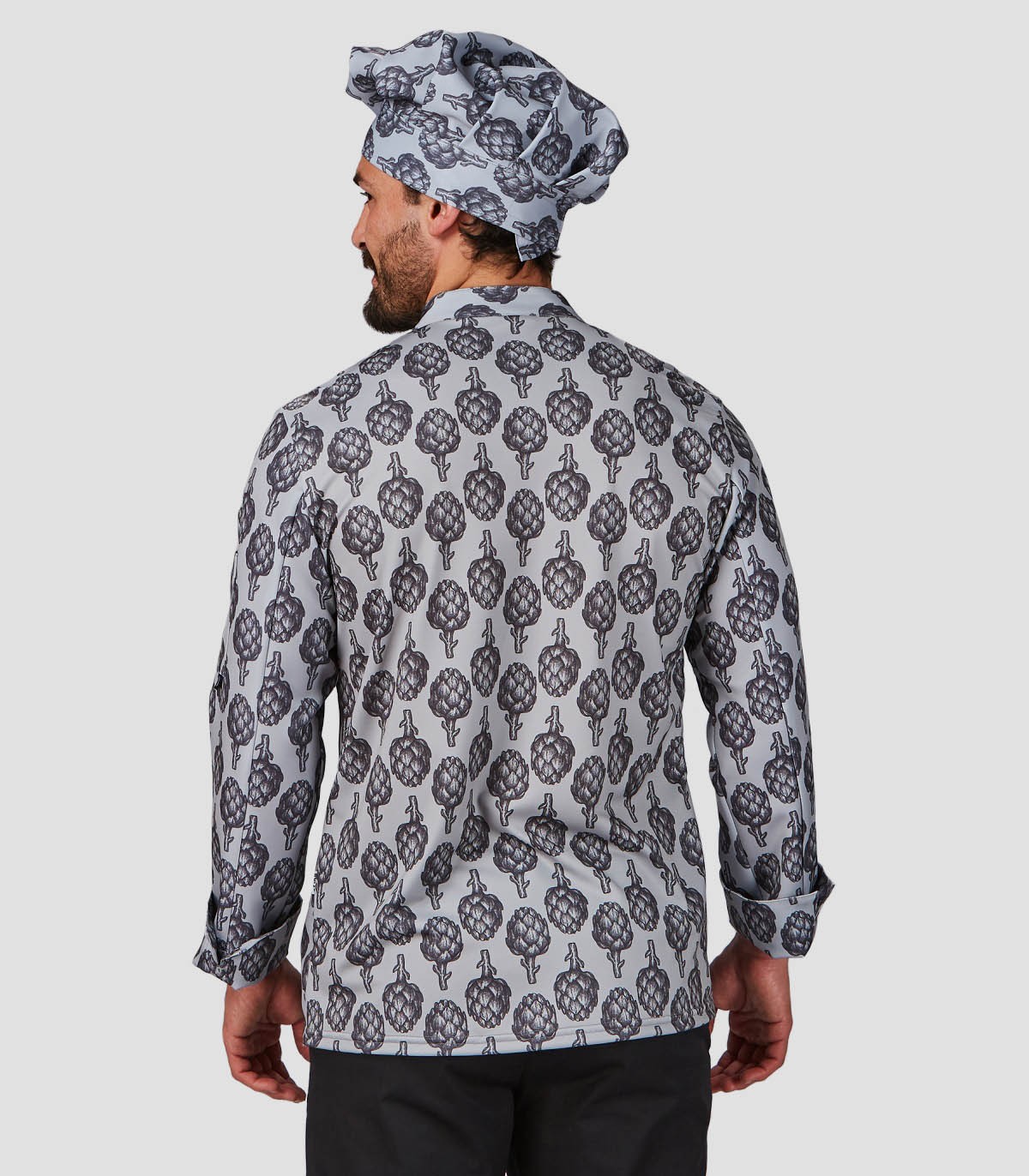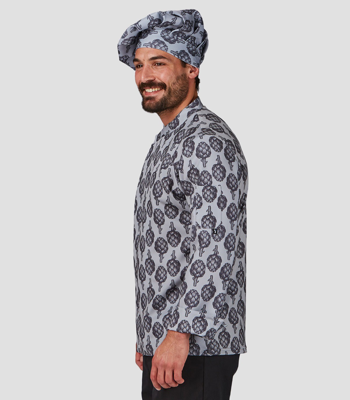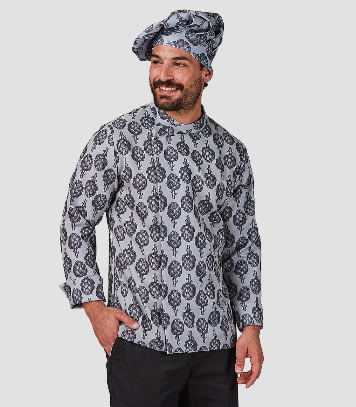 • Chaqueta de cocina con diseño moderno y tejido ecológico.
