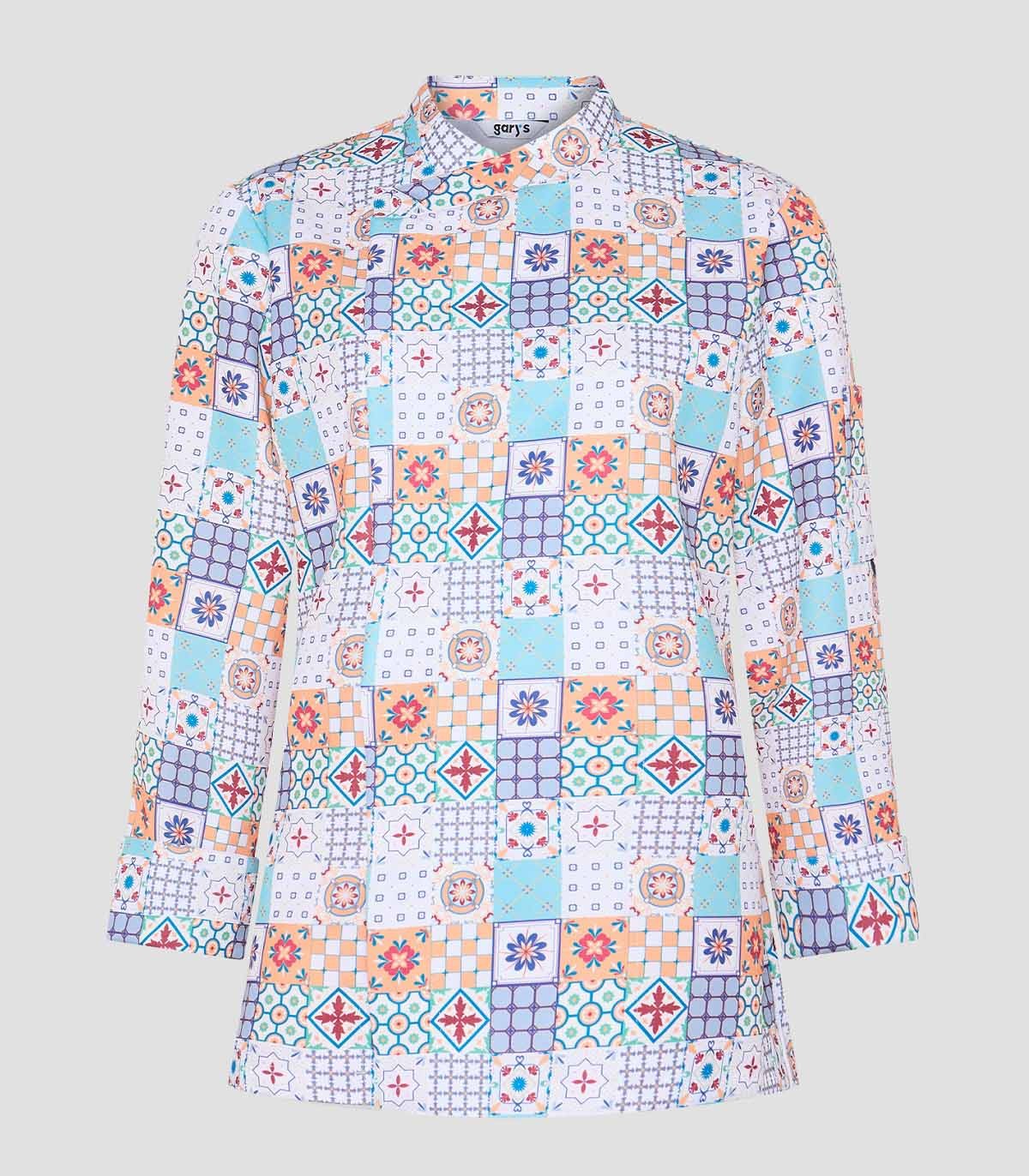 • Chaqueta de cocina con diseño moderno y tejido ecológico.