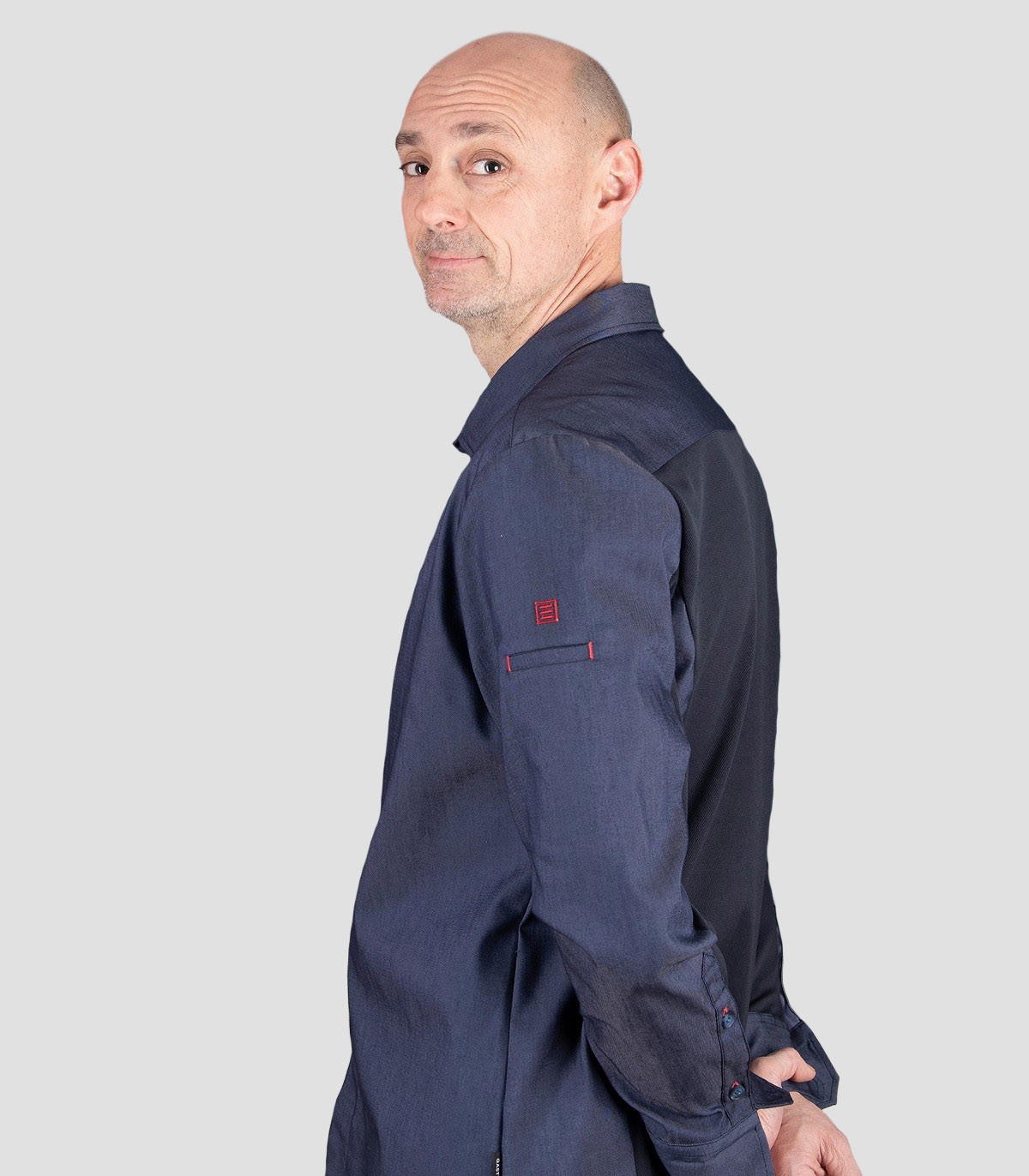 • Manga larga con bolsillo en manga izquierda.