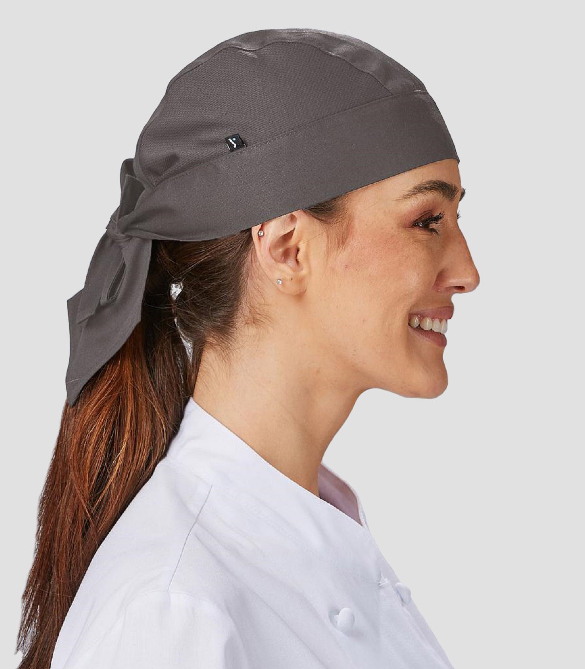 • Gorro unisex tipo bandana con tiras traseras para ajustar.