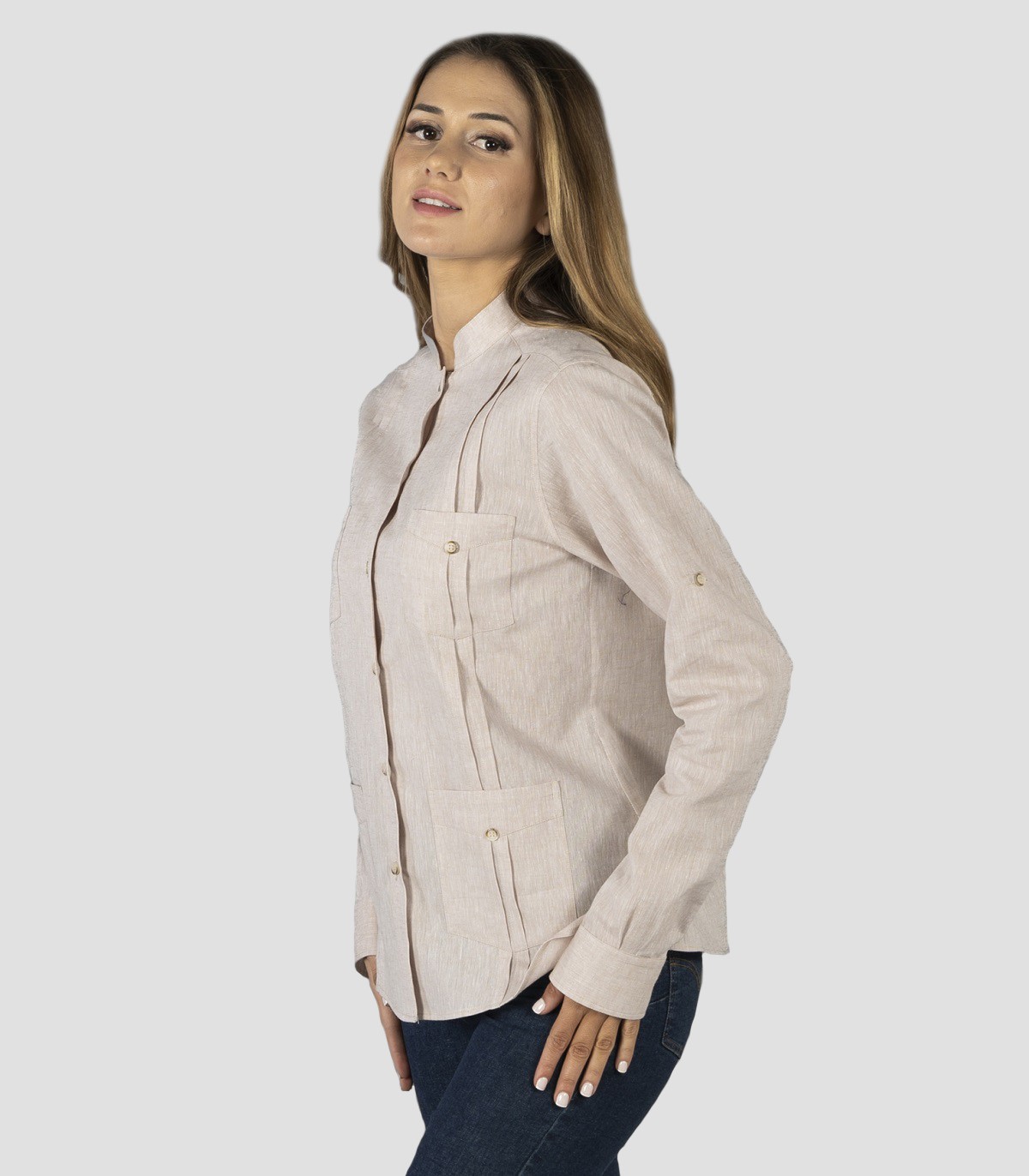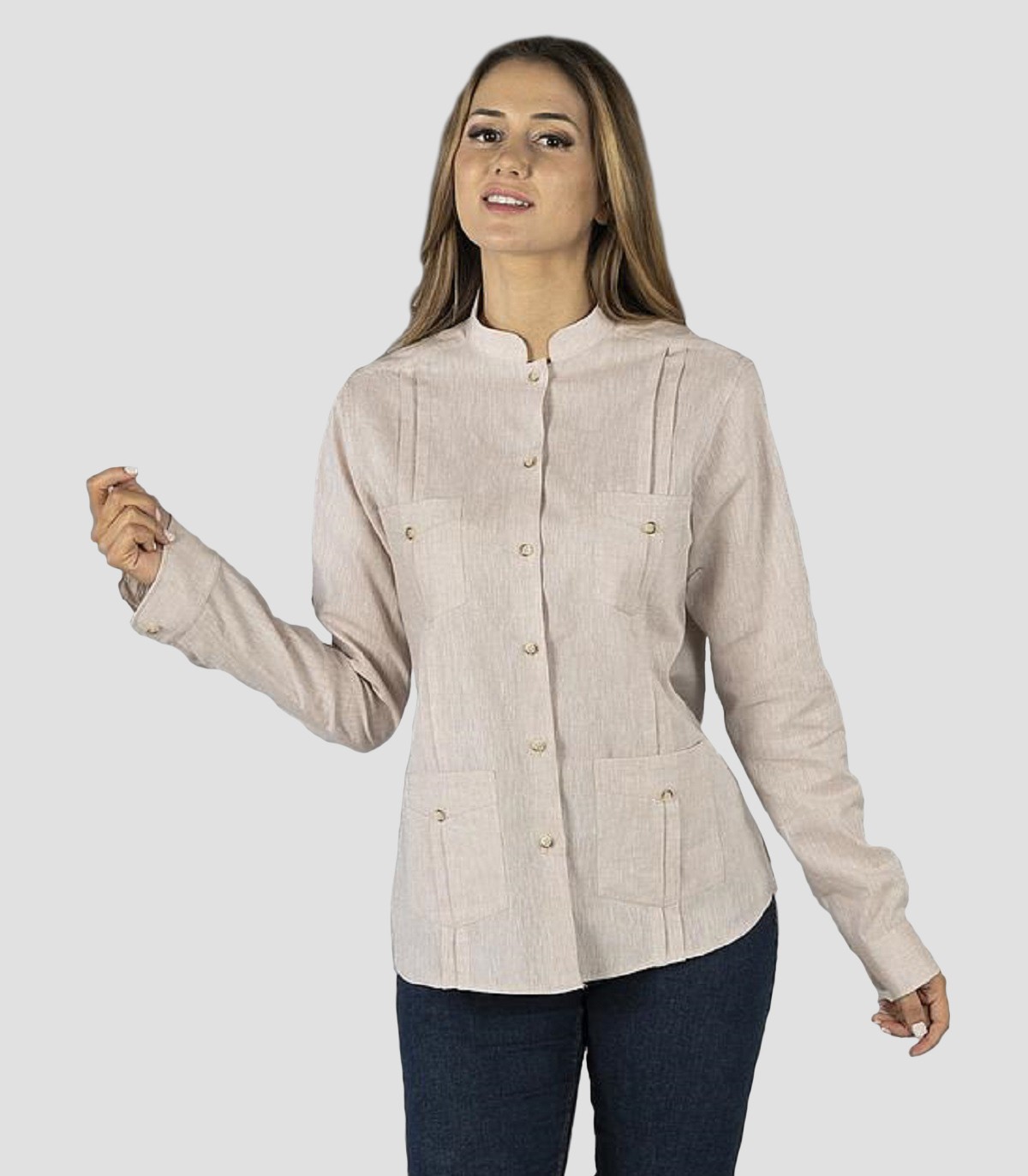 Guayabera hombre Cuello Mao Borneo Beige